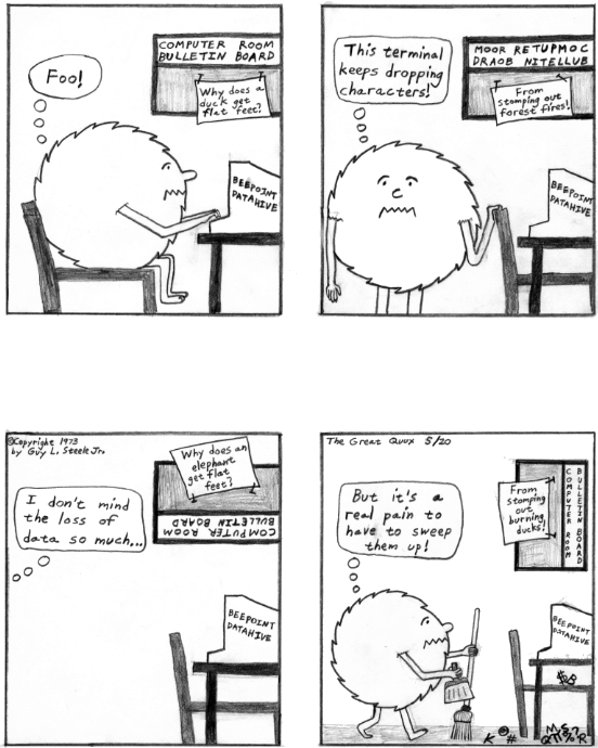 2. Missing characters in typed input due to software malfunction or system saturation (one cause of such behavior under Unix when a bad connection to a modem swamps the processor with spurious character interrupts; see screaming tty).
