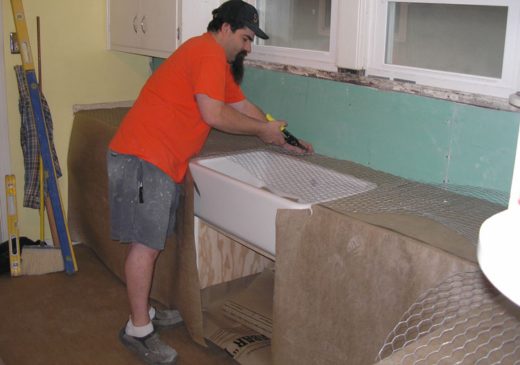 Preparing the countertops for the tile