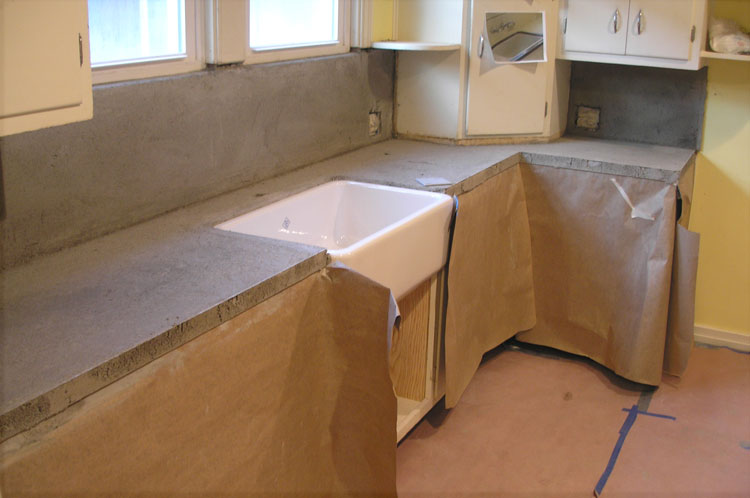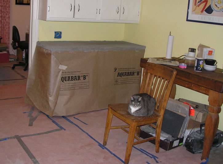 The countertop "mud" has dried and is ready to be tiled.