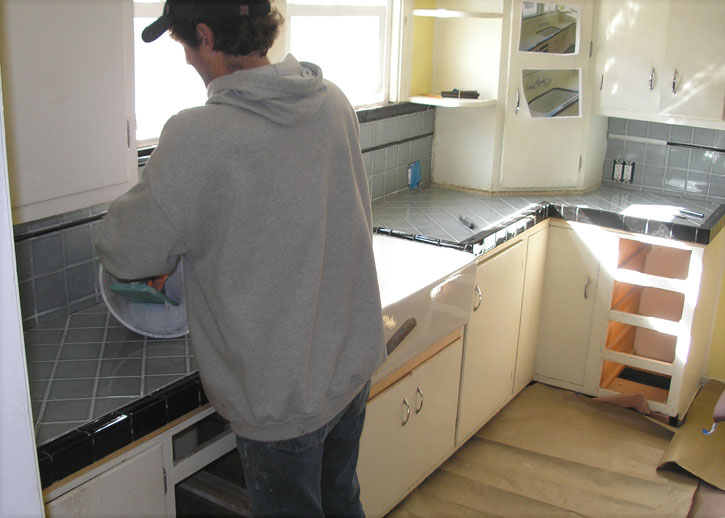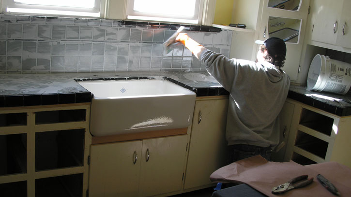Smearing the grout around