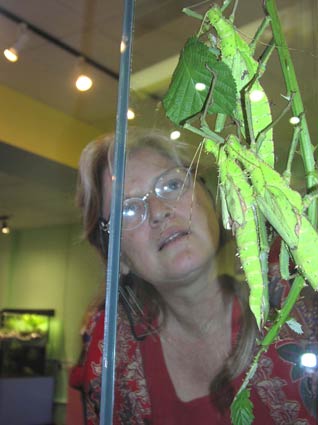 There's also an incredible insect zoo well worth visiting. Here, Cynthia gazes at a trio of praying mantises.