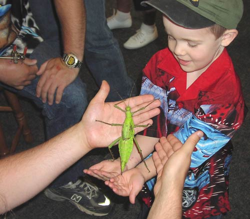 A child eagerly waits his turn to hold the mantis.
