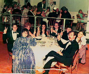 At a traditional Jewish Hippie wedding, 1968. I am on the far right. Note the peace signs on the tables as well as on the hands.