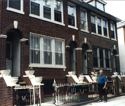 Next we make our long way through Brownsville. We are told that this is a dangerous neighborhood. There is a predominance of African-Americans, and it is clearly a poor neighborhood, but we see nothing to directly support that fear, other than our own strangeness to the neighborhood. It seems incongruous to find the spot on East New York St. where my grandparents cold water flat once stood, and to be sitting, uncomfortable with the idea of getting out of the car, then looking across the street at Herzl St., which their apartment overlooked. It seems incongruous to see a "Herzl St." in such a neighborhood. We also see the busy intersection where on a Saturday afternoon Dad and the neighborhood kids would go down to put Sunday papers together to sell. There would be a couple of kids selling papers and several others defending the corner. On a busy Saturday night, after several hours, they would net 50 cents--which actually, in those days of 2 cents plain, wasn't quite as insignificant as it sounds.