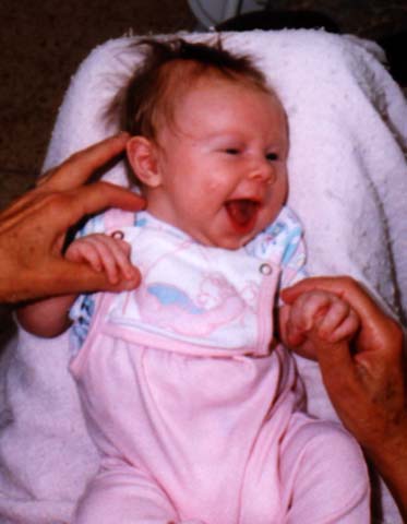 The Coming of Rahbie02 May 1997 Hi, Well it finally happened. On the 28 of April at 5:55 p.m. Rahbie Yisraela Davidow was born. Weighing in at 3 kg. 510 gr. That is about 7lb. 7oz. Both mother and daughter are doing fine. Rahbie was born with silvery light brown hair, new born baby blue eyes, And a sweet personality for a new born. The first minutes of her being in the world her eyes were open as she looked around before she succumbed to exhaustion. She is named after my father of Blessed Memory, Robert S. Davidow. We had thought about Roberta but felt it too heavy a name for such a sweet nature baby. So I went to my mother's nickname for my father which was Rob. Mom thought of ah! A beautiful baby. And I liked the ending ie instead of y. So Rahbie has come to life. Yisraela is the Hebrew name of my grandfather, Isadore Davidow. For those of you who know Hebrew the spelling is Resh, Bet, Yud.