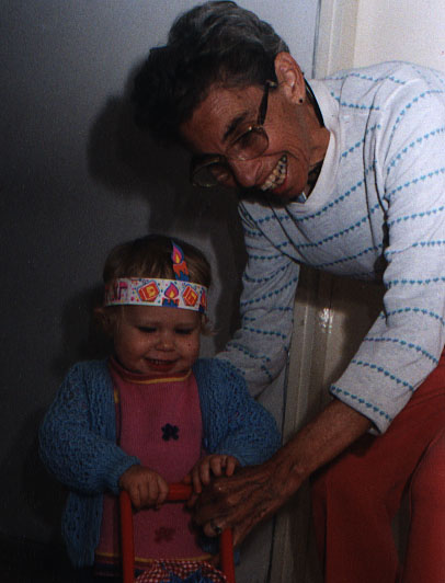 This is Rahbie at about nine months, demonstrating an early regard for recycling. Other Davidow Family stuff at this siteThe Bacon-Davidow First Seder, 5758, 1998 Notes and photos from a trip down memory lane with my father (z"l), September 1995. |