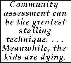 And meanwhile the kids are dying. Just pick something and do it. If you want a better handle on what the problems are, talk to the county prosecutor, talk to the ministers, talk to the Welfare Department, but don't spend a couple of years studying and prioritizing.
