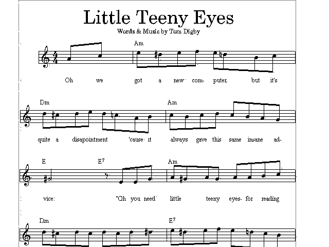 Over in another part of the meeting room some people are starting to sing. Copies of the words and music (13k GIF) are lying around. (If the music doesn't look right on your browser, try saving the file and viewing it in a paint program or something.)