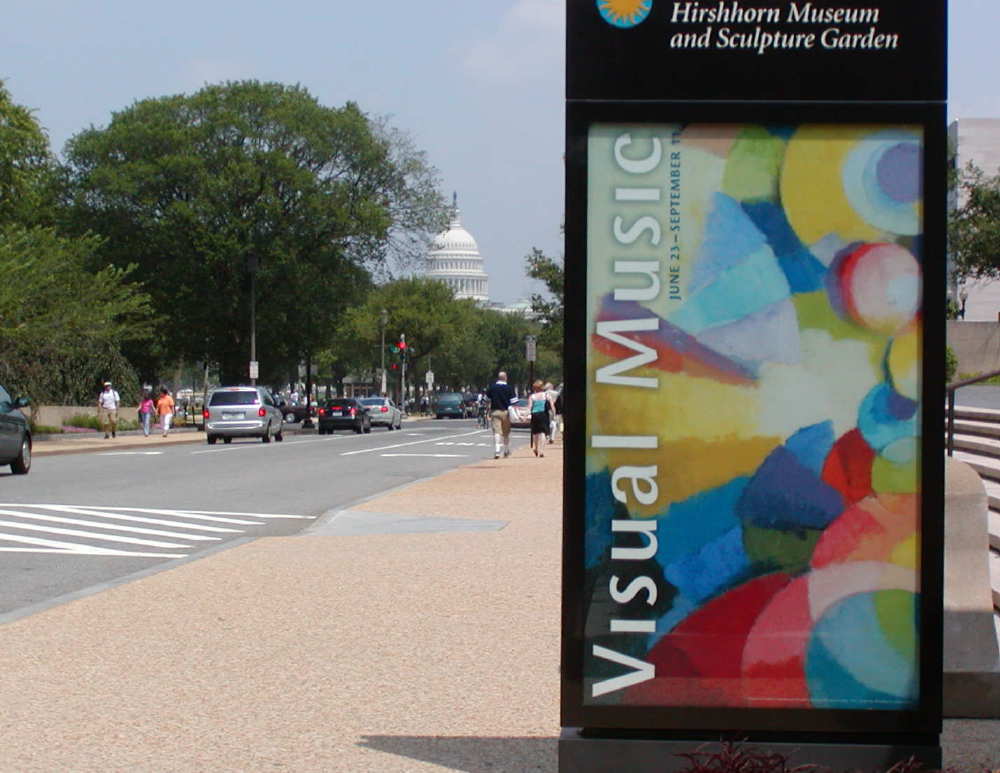 A choreographed sequence of graphic events constructed from simple elements repeated and combined in a hierarchical structure. The simplest element is a linear ribbon-like figure, that appears, follows a path across the screen and then disappears. The next level up in the hierarchy is an animating geometric form composed of multiple copies of the ribbon figure shifted in time and space. At this level the copies are spread out into a two-dimensional symmetry pattern or shifted out of phase for a follow-the-leader type effect, or a combination of the two. The highest level is the sequential arrangement of these graphic events into a score that describes the composition from beginning to end.