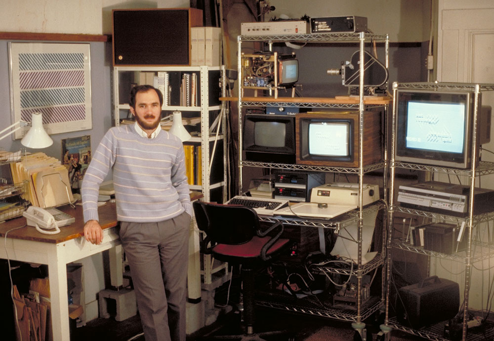 The other scenes were more difficult because their structure is more intricate- more isolated events. Rand Weatherwax did the sound for these using an Emulator Two, a digital sampling device like the Fairlight or the Synclavier that has a built-in sequencer. I found it would be easy to match the sequencing of sound events with graphics events by programming into the sequencer the same temporal structure as the images. So, because we synced up sonic events with graphic events you might say that the composition-in the sense of when notes appear and disappear-comes directly from the underlying structure that I had composed for the graphics. But when it came to what sounds to plug in for each event, Rand would pull out one of his library of effects and would modify it until I was satisfied. So in that sense it was a collaboration not unlike my collaboration with John Whitney as programmer for Arabesque. John didn't actually write the programs but he had very specific ideas. So who composed Arabesque? Well, it's Johns film creatively; I only worked as programmer, but I think if someone else had programmed it, it would have come out differently.