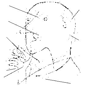 Conjectured attention foci generated by a chaotic-quenched sequence. The lines indicate points on the image which are indicated as eye fixation points of three different subjects in the referenced study by Noton and Stark.