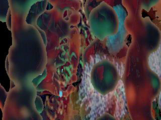 Bead Game (2002) The images are stills from studies for an interactive video piece incorporating still images from a Mardi Gras parade, interwoven with live treatment of video images of beads manipulated by the viewer. Processing uses Onadime Composer software. (<--- click for image sequence ) |