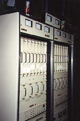 The KEYT-TV transmitter. Manufactured by Larcan-TTC, it operates with no tubes, only transistor amplification. KEYT-TV has 50,000 watts visual power, and has been at this site since 1953.