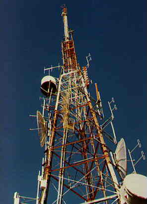 This original tower was erected in 1954 by KSBW TV, and used until 1987 when they built a new tower at Mt. Madonna in Santa Cruz County. Now it is used by so many clients, it appears to be seriously overloaded.