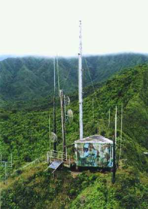 Above, the transmitter building and the main tower at Kahili.
