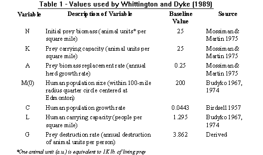 all other input values were based on Mossiman and Martin (1975) See table 1.
