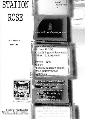 <10 years of native multimedia art> For the opening of Station Rose we produced a postcard, with 4 samples written on it. please read the 4 samples of 1988 ---> and get the update version of 4 samples, 1998 ----> |