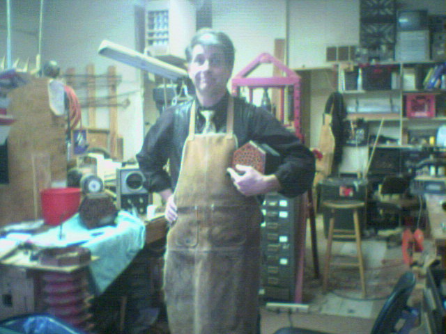 Company.Bob is becoming pre-eminent in America as a concertina maker. He and I have been chatting about concertinas for years, so I was eager to meet him! Unfortunately I didn't bring along a good digital camera, but my wife, noted Colorado potter Sumi von Dassow, did have her cellphone with her. Click on any of these pictures to see them larger. ![]()