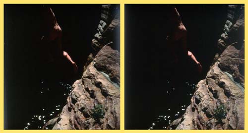 A nicely abstacted shot of me leaping from a rock into a clear,
