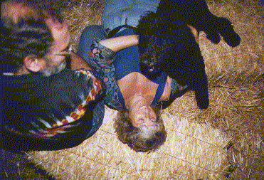 Chuck, Jo Ann, and Beau listening to the Reptiles at RoseRunner's Moto Shindig. Petaluma, California, August 10, 1996. |