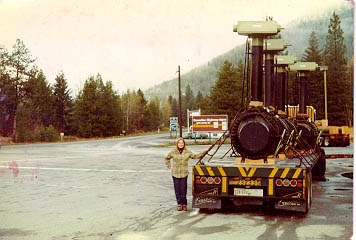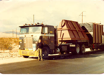 Left: My load-- A Molybdenum Dryer (12 ft. wide) going from New Westminster B.C. to "25 miles NE of Tonopah Nevada".