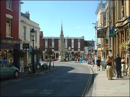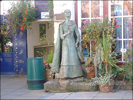![]() This is the main crossroads in the center of town. On the left are two nice restaurants with open air seating. Behind you on the right is the Town Hall and the entrance to the Abbey. Just around the corner on the right is the Glastonbury Experience. Behind you on the left are hotels, restaurants and bookstores. |