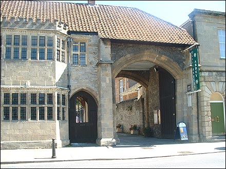 ![]() This is back the other way, the low end of town, on the right, the entrance to the Abbey. Probably some of the oldest buildings. The Town Hall is to the right of this. |
