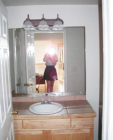 as the sink, and is full-size. Once again, the light fixture is in that same