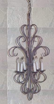 Entry The chandelier above the entryway is the first of a number of wonderfully unusual fixtures throughout the house. Instead of the typical new house brass-and-glass fixtures, these are a beautiful iron patina.