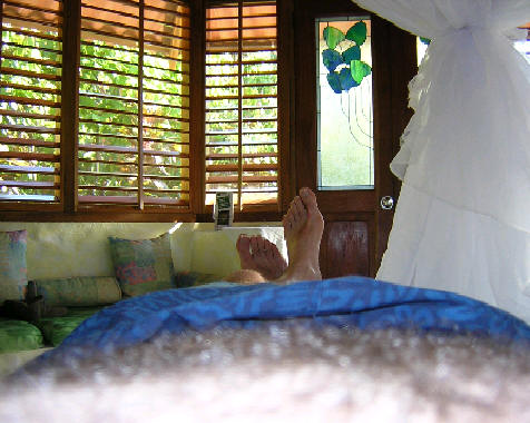 Here's my hairy belly, swim trunks, feet and then finally my bungalow in