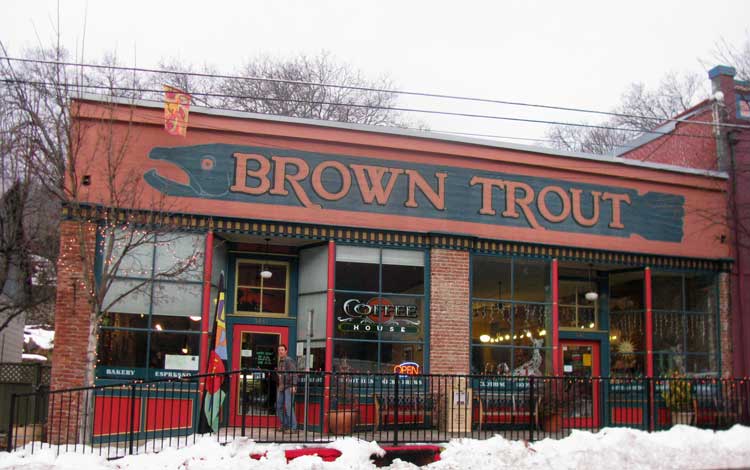 David, about to enter Dunsmuir's "Brown Trout" coffee house