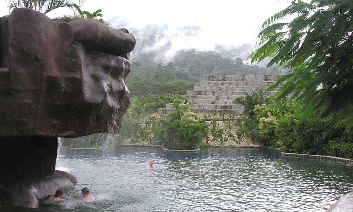 Tabacon, though Disneyesque in its pristine perfection, gives visitors the feeling of being in nature. The man-made pools are mostly small, intimate, understated, and surrounded by dense jungle vegetation.