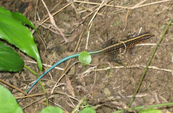 | This blue-tailed skink was hiding under our deck one morning. |