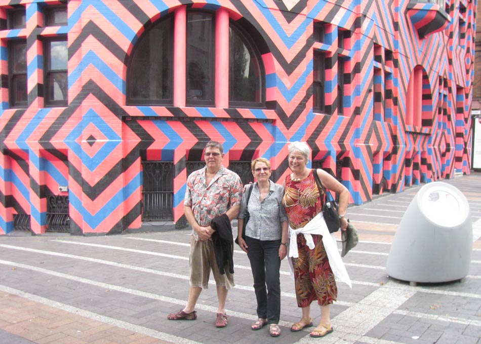 Paul, Pam and I pose in front of the hippie-est building we could find