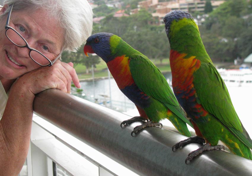 When I lived in Australia, I was barely aware of the astounding variety of birds this country offers. On this visit I learned to appreciate the rich array of feathered friends that presented themselves to me. I was especially taken with the rainbow lorikeets, which visited me every morning on the balcony of the north Sydney apartment where I stayed for nearly three weeks.
