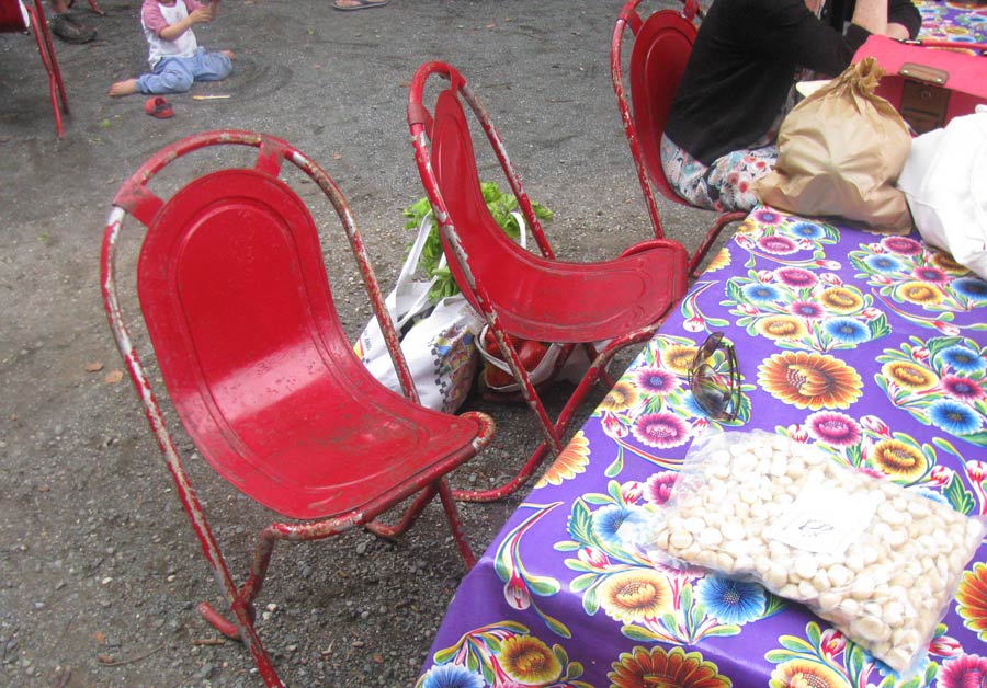 These vintage folding chairs were set up at a Farmers Market eating area.