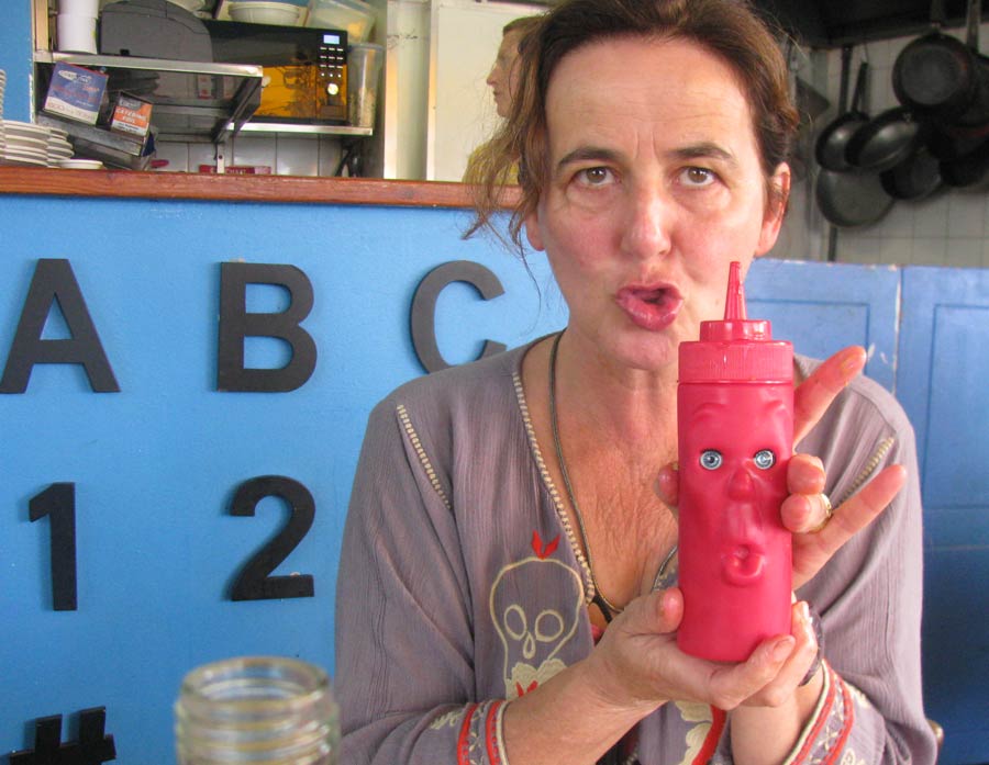 This fabulous catsup dispenser, held by my Aussie friend Kate, blinked when