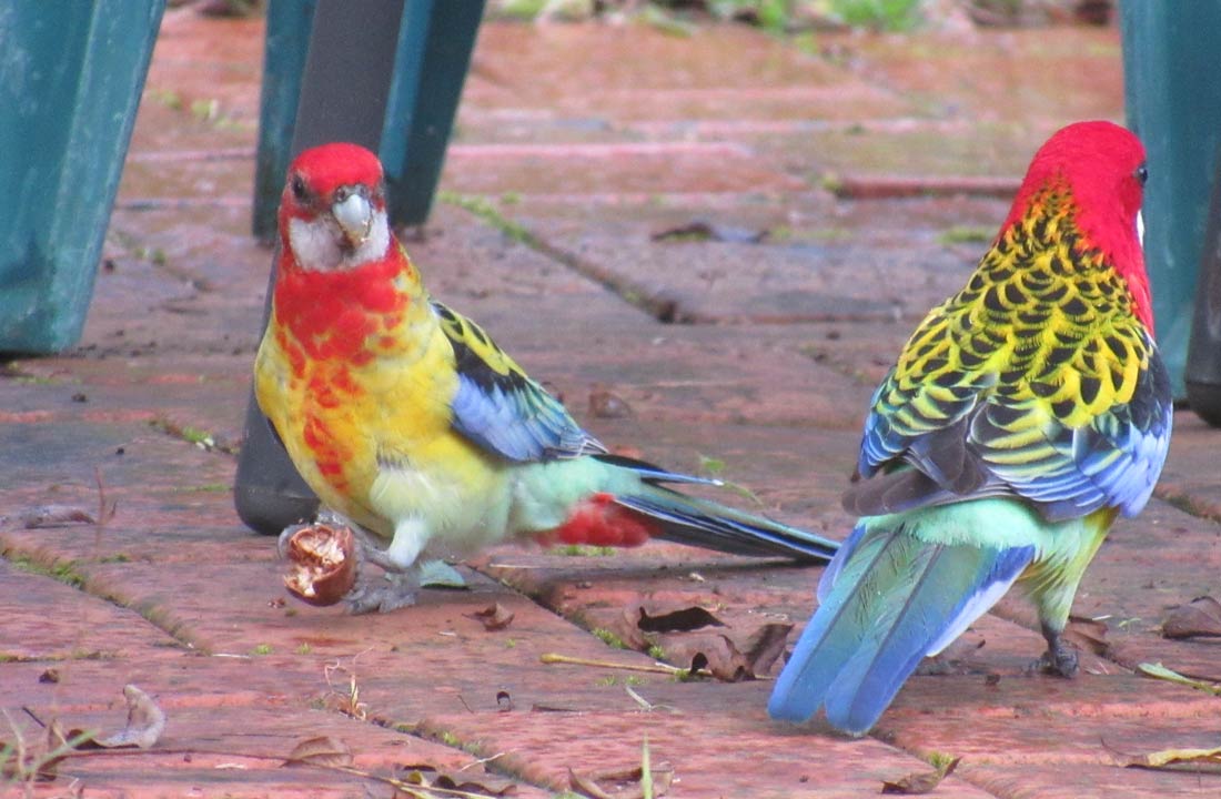 These eastern rosellas are also big fans of pecans.
