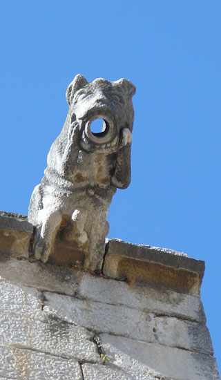 | This 17th century gargoyle/roof drain also offers representations of fertility, but the imagery is far from subtle. |