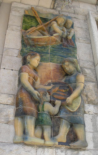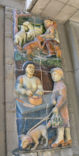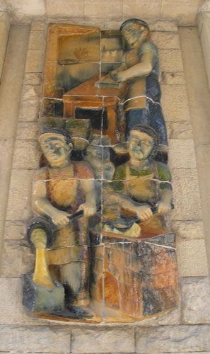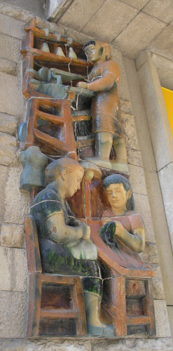 A building near the train station in downtown Girona had dozens of handcrafted large (2 feet x 4 feet) ceramic tile images done in bas relief, each depicting scenes of daily working life.