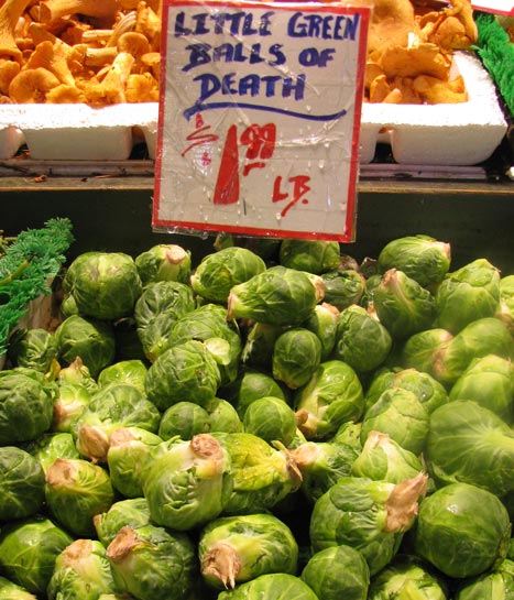 Though personally I love Brussel sprouts, this sign made me burst out laughing.