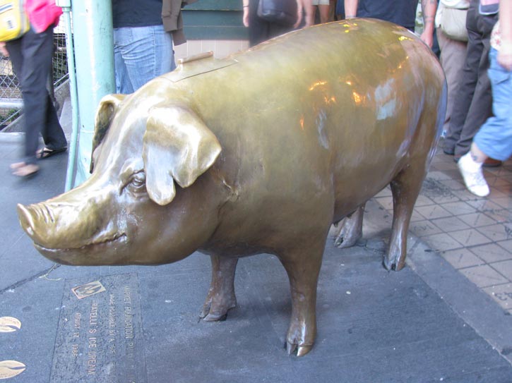 Unlike the Portland pig on the previous page, the Pikes Market pig does not