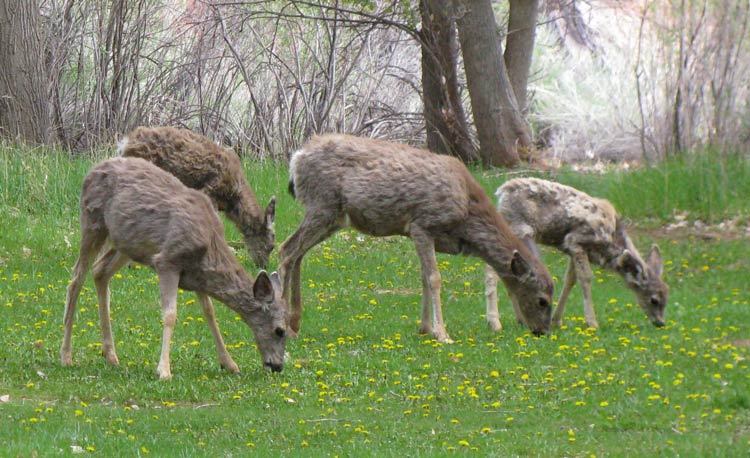 With spring bursting forth, these mule deer are shedding their winter