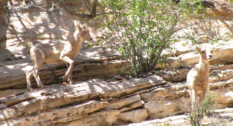 Wildlife photos are difficult in Utah, where most animal activity takes place at night. Deer abound everywhere, however, and the Bighorn Desert Sheep at Zion National Park are so accustomed to human activity that they graze only a few feet from the road.