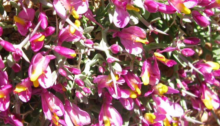 Each yellow and pink flower is tiny, about the size of a kidney bean