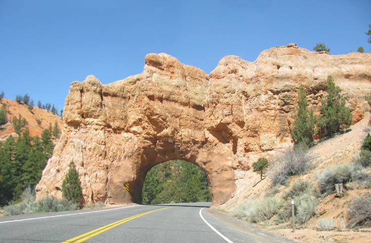 We must pass through this bridge carved through sandstone to get to Bryce.