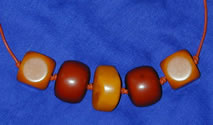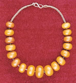 mixed African Amber beads knotted off with a scrab-like closure. The