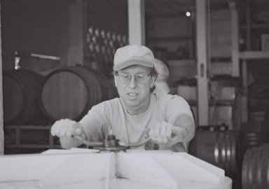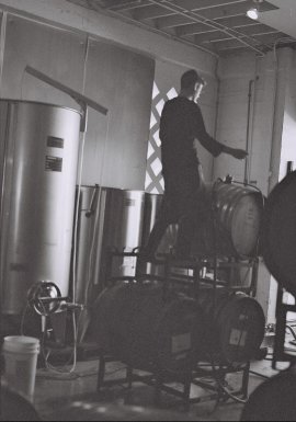 very, very serious as the wine is pumped into a barrel.