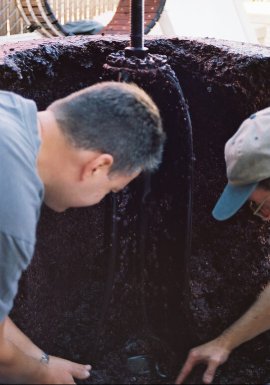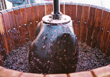 pressing the grapes against the walls of the press to gently extract wine