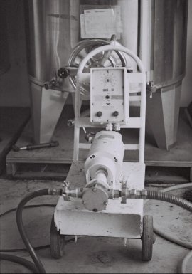 the fermentation bin or the wine press to the pump; another hose runs from